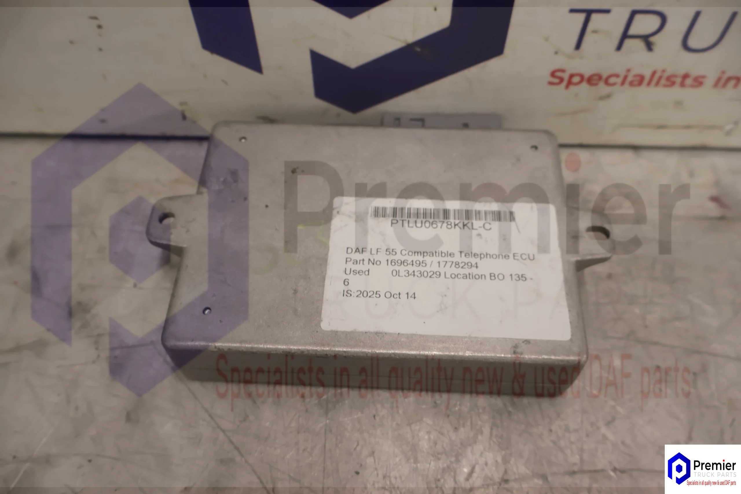 Used DAF XF105 Telephone Interface ECU. Plug in installation. Free next day delivery to mainland UK. Shop a wide range of new and used DAF parts. Add to your basket now. Fits DAF XF105 Telephone Interface ECU Part No – 1778294 Price – £119.99 Inc VAT Condition – Used Brand – Removed From DAF Truck Manufacturer Part Number – PTLU0678-KKL Country of Origin – United Kingdom Grade – B Intended Use – Replacement Part Mileage – N/A Type – Telephone Interface ECU Vehicle Identification Number (VIN) – 0L343029 Warranty Period – 3 Months Colour – Silver DAF Part No – 1778294 Euro – 5 Installation – Bolt On Material – Steel Model – CF65 / CF75 / CF85 / XF105 Placement On Vehicle – Cab Year – 2008